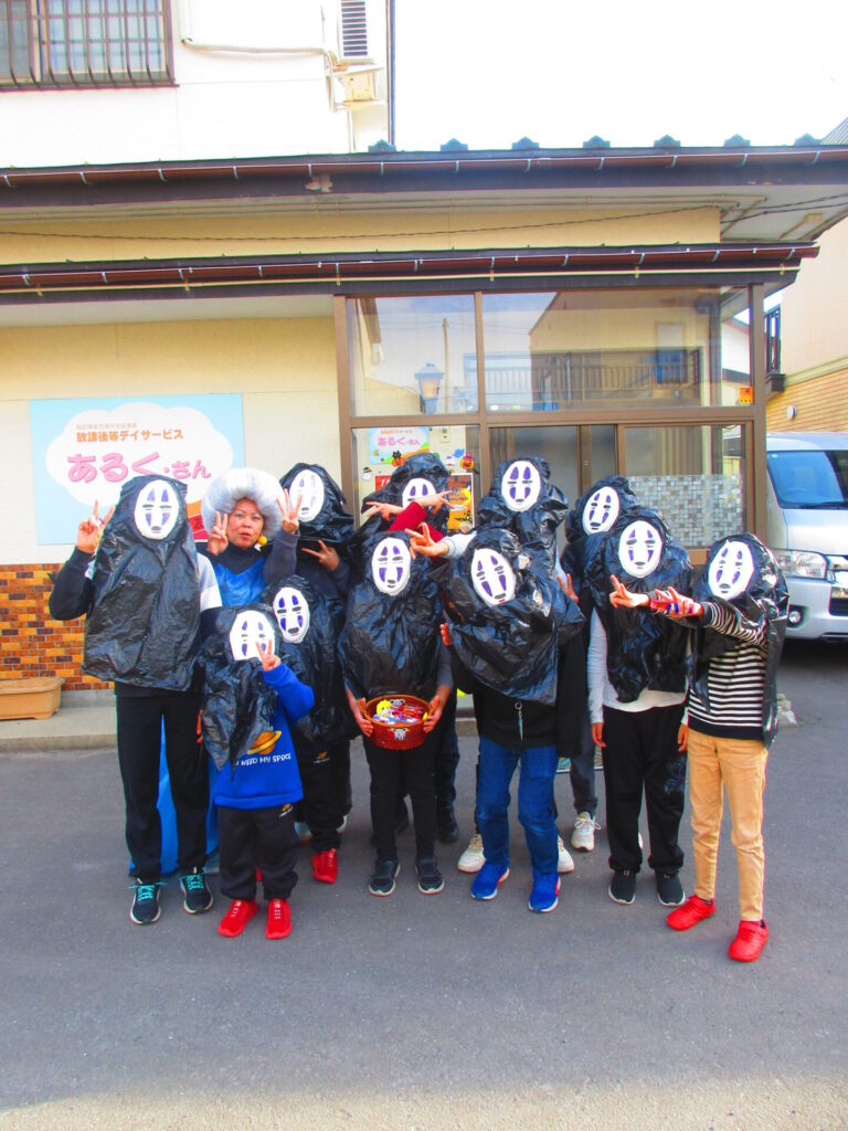 10月のあるく・ごぉのお誕生会はハロウィンパーティーを行いました。みんなで「千と千尋の神隠しのカオナシ」に仮装し、ケンタッキーとミスドを食べました!