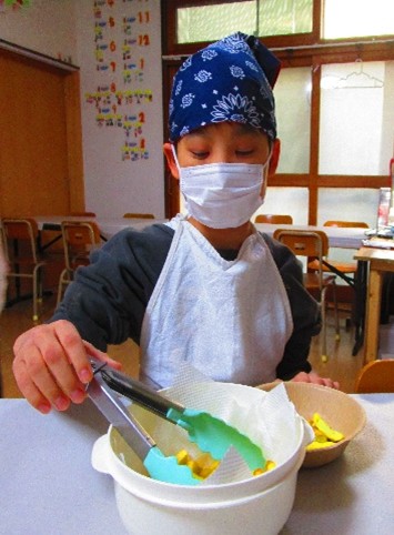 11月のクッキングレクは「フライドポテト~ディップソースを添えて」に取り組みました。フライドポテトに自分で選んだ好みのソースをつけて、美味しくいただきました。