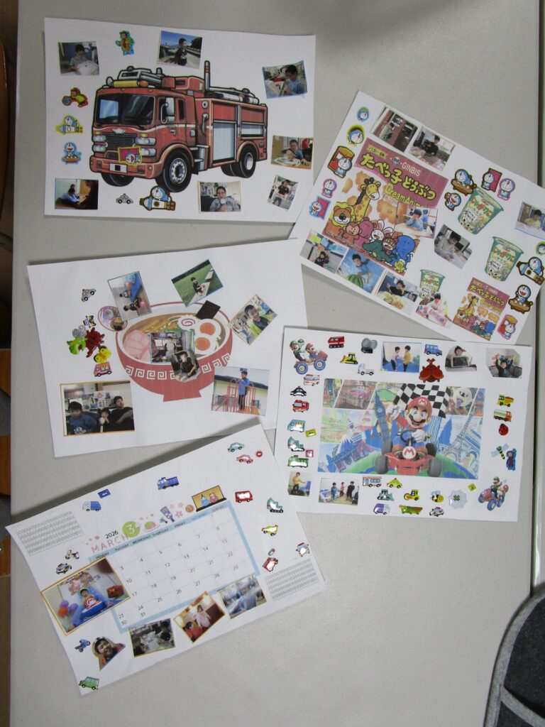 3月の制作活動は『メモリアルコラージュ』に取り組みました。それぞれ今年一年を振り返って印象に残っている写真や好きなもののシールを貼りました。